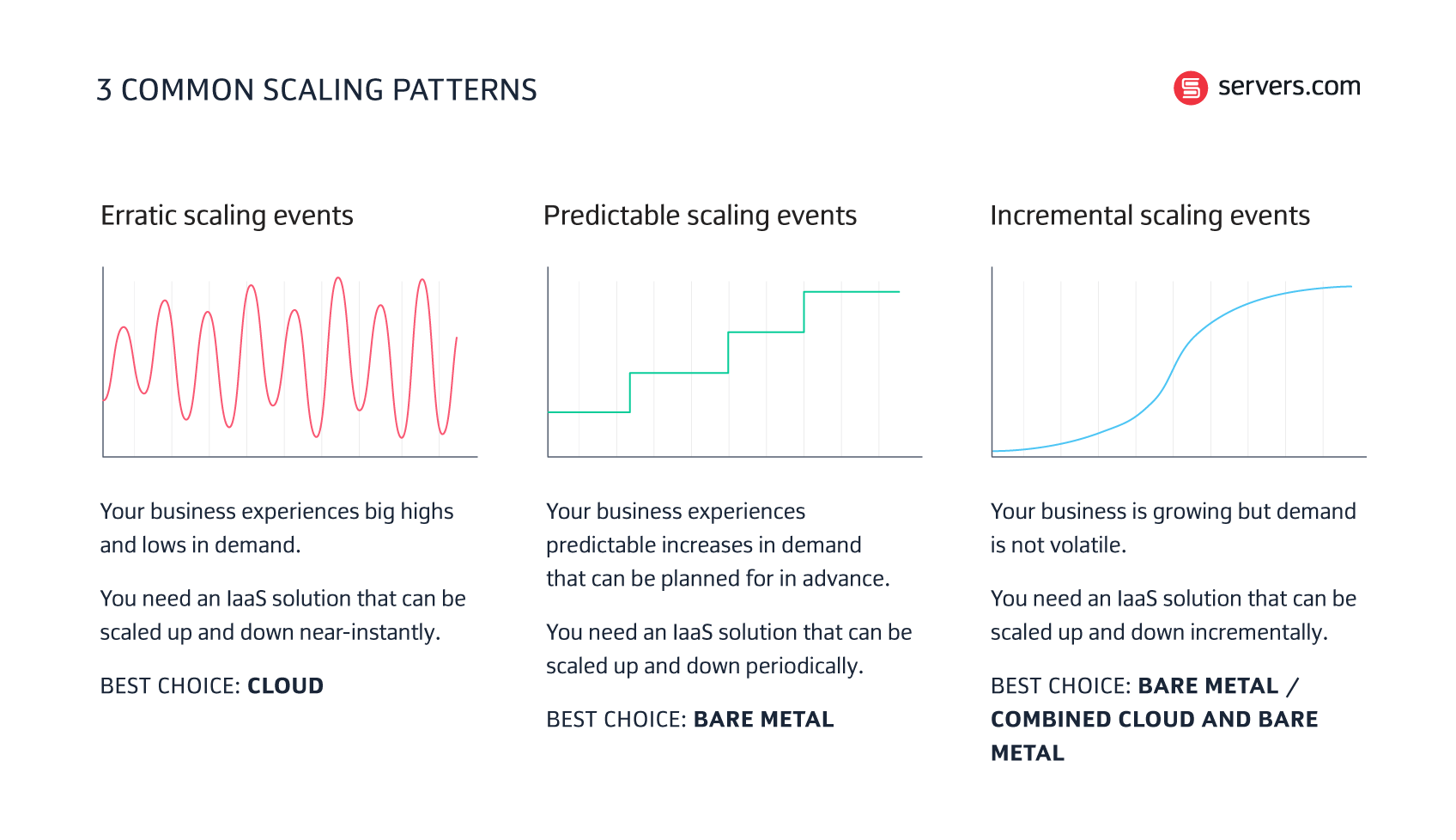 Key to choosing the right IaaS model is to understand the type of scalability events your business experiences. This can be challenging as data can only get you so far. Nobody has a crystal ball and it’s impossible to predict scaling events with 100% accuracy.